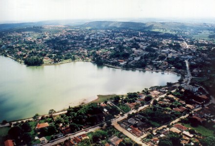 Vista aérea , destacando a lagoa o centro e o bairro da Várzea