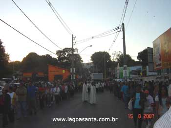 nunca foi alterado, e liga as duas maiores Paroquiais da cidade.Mais de 5mil pessoas acompanharam o andor de Nossa Senhora da Saude. Para os fiéis, a procissão e a chegada na matriz, simboliza o agradecimento das graças, pedidos, alem do dever cumprido para com nossa Mãe eterna; na esperança para o ano de 2008, poder participar novamente. |
