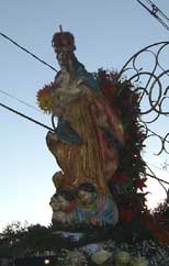 | Pessoas de todas as idades, acompanham a procissão, algumas pagam promessas. | O andor bem ornamentado, seguindo o estilo dos ano anteriores | |