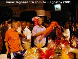 ![]() Leiloeiros Bené e Zinho com um cartucho de amêndoas |