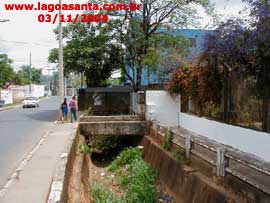 | A antiga escola da Febem fez sua cerca na beira do canal, ao lado do ginásio Poliesportivo. | Loja faz cobertura para expor suas mercadorias em cima do passeio da Av. João Daher. |