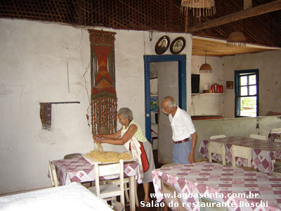 Italiana, sua influencia em lagoa Santa - 2ª parte Restaurante Boschi ocupava um casarão de época, sem detalhes especiais de arte na edificação. A sua grandiosidade, mostrava a cozinha italiana, cujo prato de referência era o macarrão. |