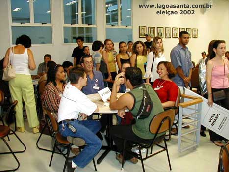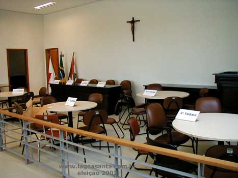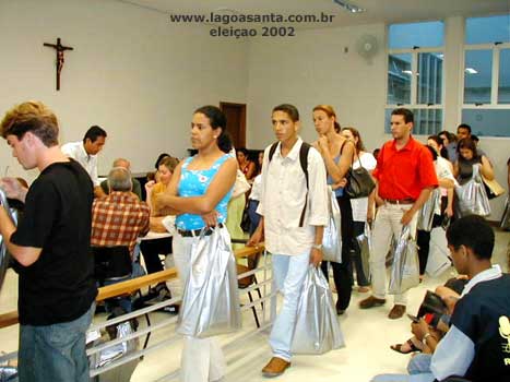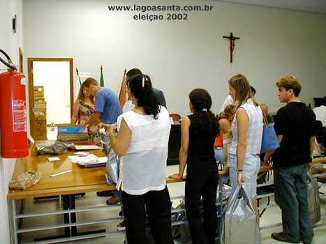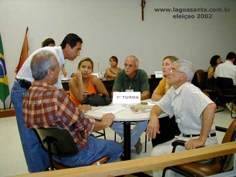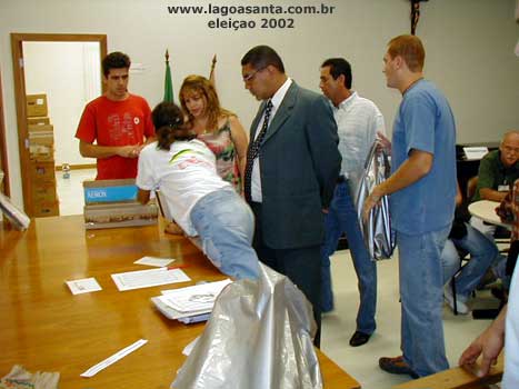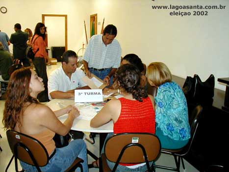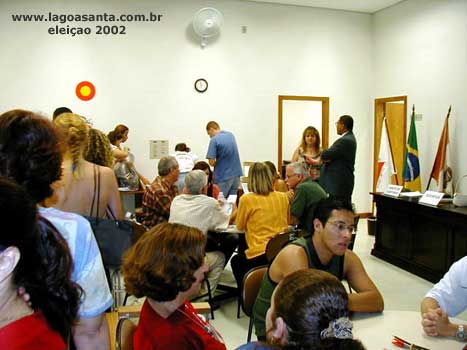 2002 - Apuração - Justiça Eleitoral Às 17 horas os chefes de seções começaram a entregar as urnas na sala de júri do Fórum, via-se em cada um a satisfação do dever cumprido. Uma nova equipe de voluntários aguardava as orientações para checar as atas e relatórios, e em seguida emitir os boletins e enviar os dados para o TRE. Todo o serviço foi executado sob a orientação da juíza Dra. Sandra e do Promotor Dr. Adriano. Alguns fatos marcaram a eleição em Lagoa Santa - como as longas filas e o incidente que envolveu o Prefeito Genesco e o Presidente da Camara vereador Juninho. Os 1324 eleitores lotados nas 05 seções na escola do CAmpinho, eram disputados de varias formas pelo grupos políticos do Prefeito e da oposição com nome de Novo Tempo. Ambos permaneceram no local quase todo o período de votação, disputavam quem tinha mais força política, saindo vitorioso o grupo que conseguisse mais votos para seus deputados no Campinho. No final houve uma diferença de 02 votos para deputado estadual e 10 votos para deputado federal, quase um empate técnico. Os nervos se acalmaram depois que as autoridades da Justiça Eleitoral chegaram e proibiram todos de permanecerem próximo às seções. Desde que o Vereador Juninho ganhou a presidência da Câmara Municipal, derrotando o candidato indicado pelo Prefeito, o relacionamento entre eles deixa a desejar. Bom que estes fatos aconteceram em um distrito, não alterando o andamento da eleição nas demais regiões. Ainda houve manifestação com panfletagem. |