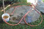 na água, tipo barro mesmo, da cor de coca cola, encardindo as roupas,